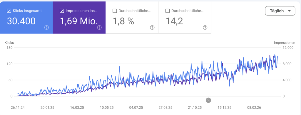 Der Kunde erzielt mittlerweile über 3.500 Klicks pro Monat allein über die organische Suche.