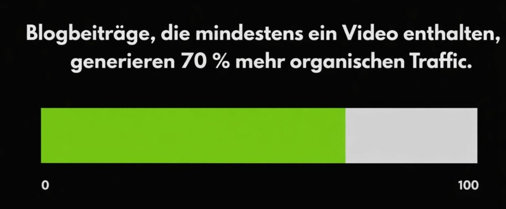 Editoren und Autoren investieren Zeit in Planung, Draft, Fact-Check, Formatierung und Updates. Blogposts mit mindestens einem Video erzeugen ~70 % mehr organischen Traffic als Posts ohne Video. (Backlinko)
