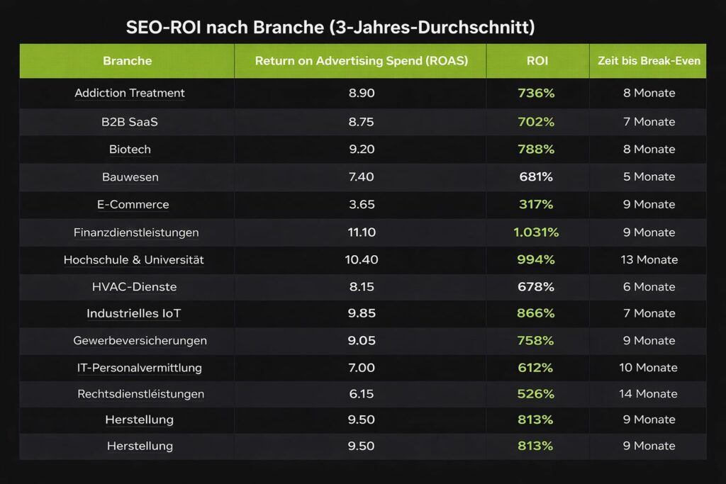 Laut Ahrefs zeigt B2B-SaaS-SEO im Durchschnitt einen ROI von rund 702 % über drei Jahre bei einem Break-even nach etwa sieben Monaten. Das zeigt, wie wichtig es ist, SEO nicht isoliert zu betrachten, sondern eng mit CRM-, Sales- und Revenue-Daten zu verbinden. (Ahref)