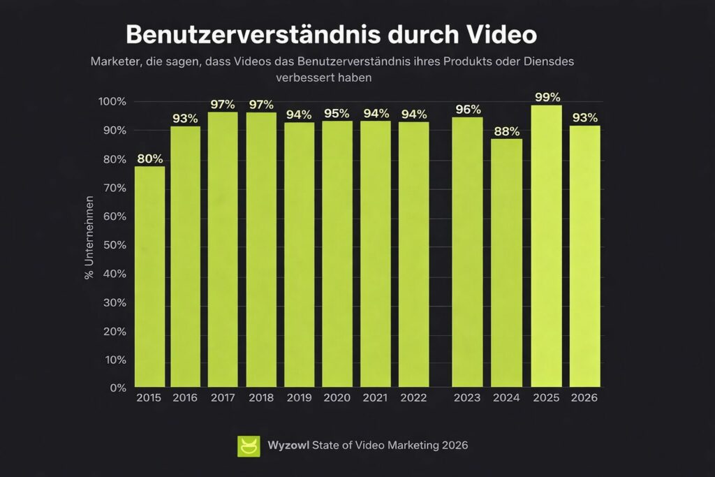Laut Wyzowl sagen 93 % der Video-Marketer, dass Videos dabei geholfen haben, das Verständnis der Nutzer für ihr Produkt oder ihre Dienstleistung zu verbessern. (Wyzowl)