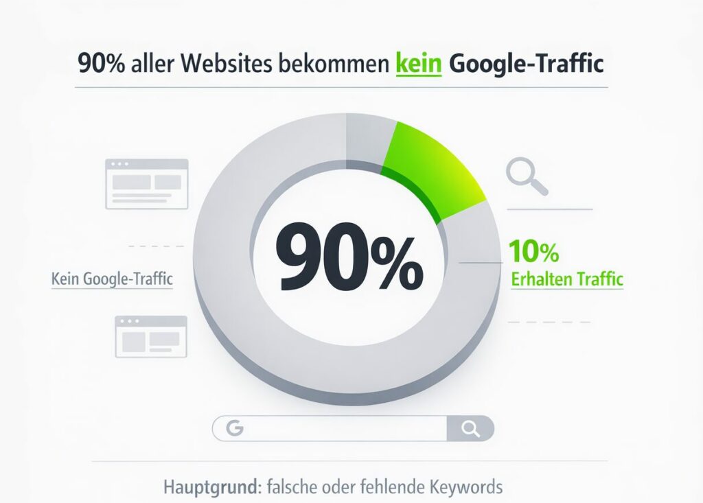 Laut Ahrefs (2025) bekommen über 90% aller Webseiten null Traffic von Google, und ein großer Grund ist, dass sie die falschen Keywords targeten — oder schlimmer: gar keine. (Ahrefs)