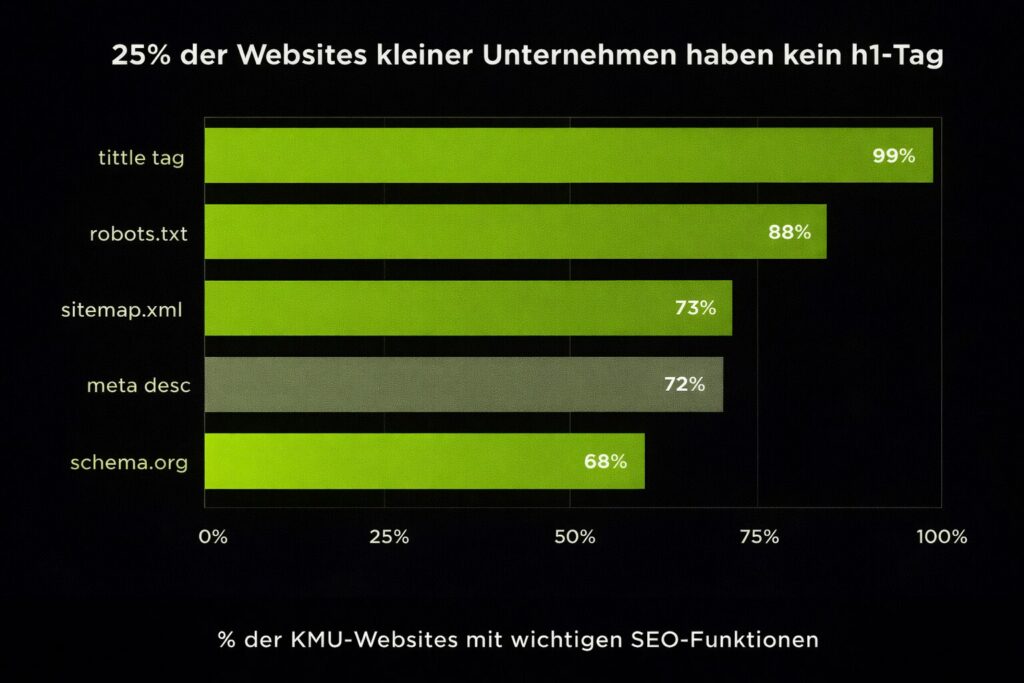 25 % der kleinen Unternehmens-Websites haben keinen H1-Tag – gemeldet in Backlinkos „SEO Statistics for 2025“. (Backlinko)