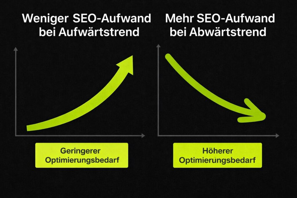 Auch wenn SEO anfangs einen erheblichen Aufwand erfordert, ist es nie wirklich ein „Einmal-und-fertig“-Projekt. Es sei denn, dein Projekt entwickelt sich nicht weiter und die Konkurrenz steht still – aber das ist die Ausnahme.