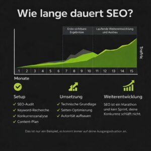 • Wenn du dich auf technische Fehler, gezielte Inhalte und strategischen Linkaufbau priorisierst, beschleunigst du deine SEO‑Zeitleiste.