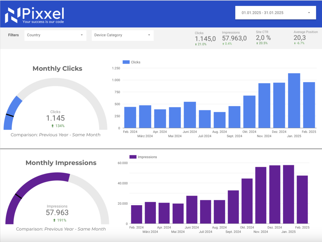 Und falls du dich fragst, warum der Februar schwächer war als der März: SEO hängt immer auch vom Suchvolumen ab – und das kann saisonal schwanken. Wenn du zum Beispiel eine Skimarke bist, wirst du im Sommer naturgemäß deutlich weniger Traffic haben als im Winter.